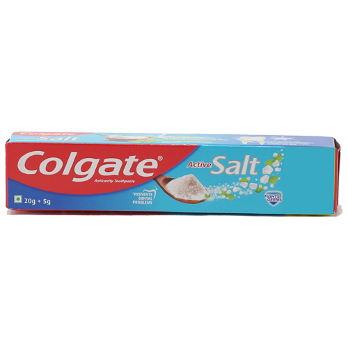Colgate Active Salt is an anti cavity toothpaste with the goodness of salt and Minerals which help fight germs. Refreshing minty flavour gives fresher breath when used as directed for oral hygiene. Colgate Active Salts unique formula helps fight germs and provide you with healthier and cleaner teeth. Brush twice a day with Colgate Active Salt toothpaste as recommended by dentists.